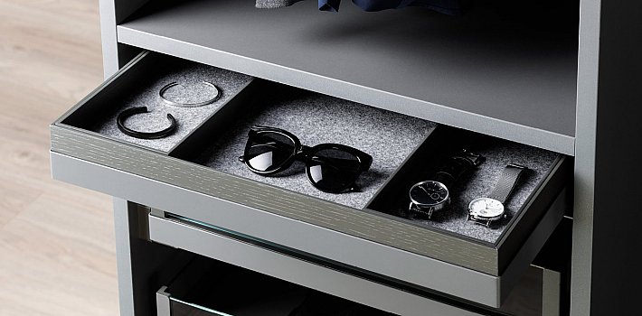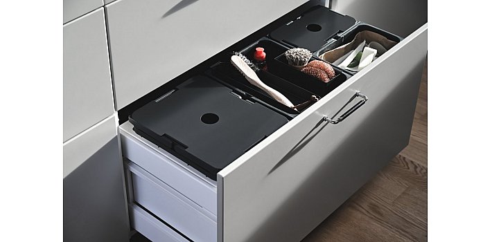Det samme gør sig gældende i skuffer og mindre skabe, med system og orden i dine skuffer og skabe bliver det betydeligt lettere at holde krydderierne friske med en krydderihylde, vinflaskerne lettilgængelige, mens en udtrækkelig håndklædetørrer til køkkenhåndklædet gør, at du altid ved, hvor det befinder sig.