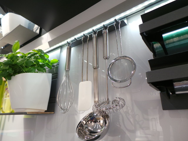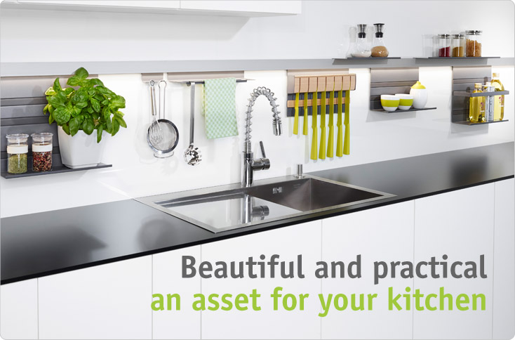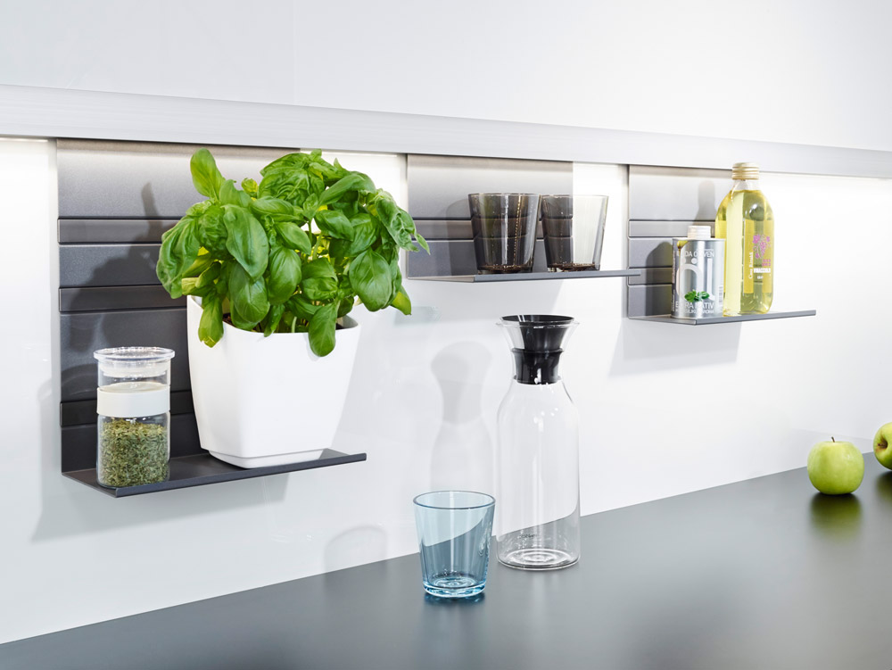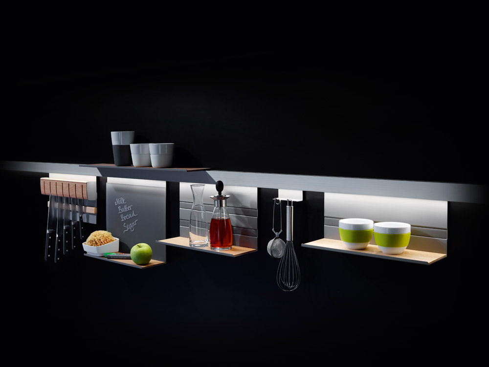Serien bygger på en profil som kan skruvas eller limmas upp på din köksvägg, ovanför köksbänken eller vart du nu vill ha den. Sedan kombineras denna med de tillbehör som du vill ha, allt från plast och aluminiumfolie hållare till små krokar att hänga upp vispen på.