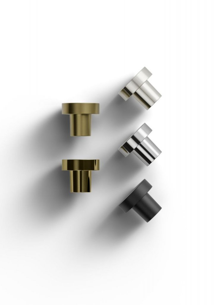 Med gevindstift kan knoppen også bruges på væggen til ophæng af håndklæder, smykker eller mindre accessories.