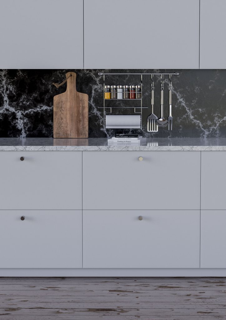 Kombinér gerne Rimini med matchende greb i rustfri-look for at skabe et ensartet helhedsindtryk.